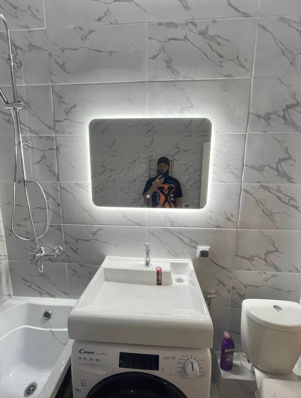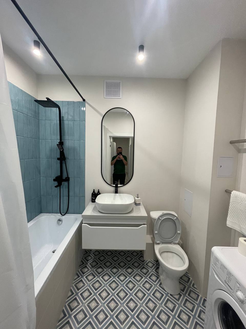 - Установка точечных светильников в санузле